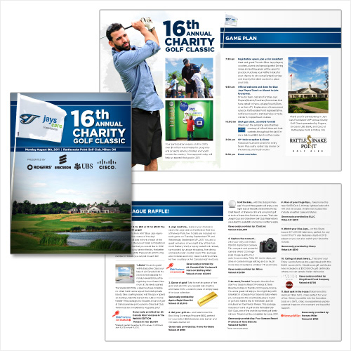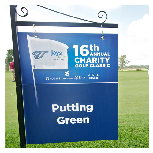 Branded signage for The 16th Annual Charity Golf Classic in support of Jays Care Foundation