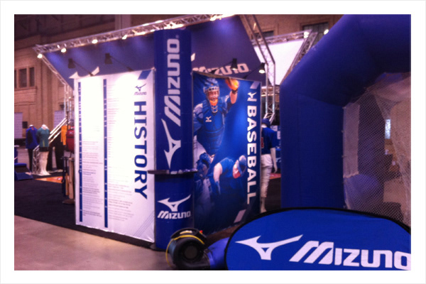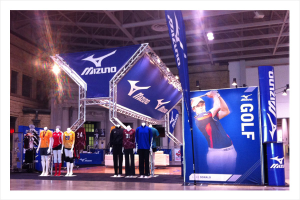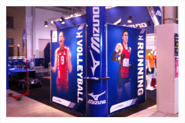 The goal set by Mizuno Canada at a Volleyball Canada Tournament was to promote their involvement in the sport of Volleyball as well as display the technology-leading merchandise from the other sports they are involved in. The challenge of combining different sports was overcome by creating a common look through each banner, with a heavy emphasis on branding.