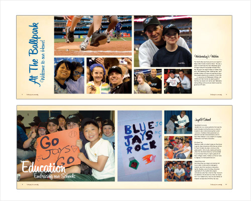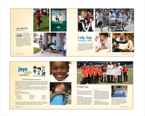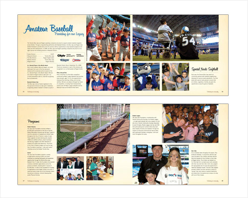 Book designed for the Toronto Blue Jays to report their community efforts.